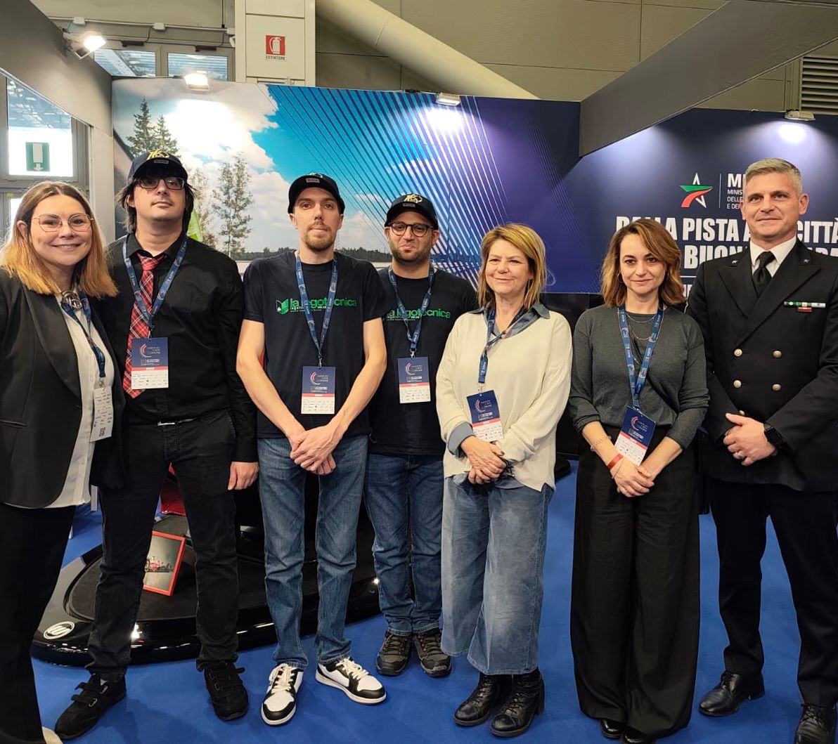 14 novembre 2025 - Nell'ultimo giorno dell'Assemblea nazionale Anci lo stand MIT, tra i tanti visitatori, ha accolto anche i ragazzi delle Associazioni presenti allo stand del Ministero per la Disabilità, "la Legotecnica Onlus di Pasian di Prato" (Federico e Roberto) e " Frolleria Anfass Mirandola" (Lorenzo), che hanno potuto provare il simulatore e comprendere l’importanza di applicare l’eccellenza della tecnologia sportiva alla sicurezza stradale.
