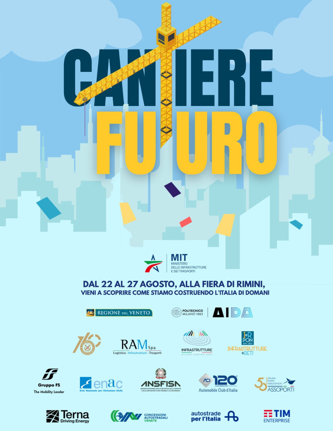 18 agosto 2025 – Dal 22 al 27 agosto, il ministero delle Infrastrutture e dei Trasporti (MIT) sarà presente al Meeting per l’Amicizia fra i Popoli di Rimini con “Cantiere Futuro”, un grande spazio espositivo allestito nel Padiglione A1 della Fiera: un percorso immersivo e interattivo che racconta le opere, i progetti e le innovazioni capaci di trasformare il volto del Paese e unire i suoi territori.